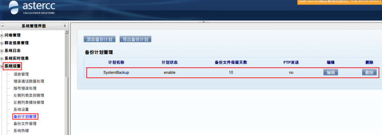 备份完成后,在[添加备份计划]页面,会出现刚才备份的信息,可以对其进行[编辑]和[删除]操作