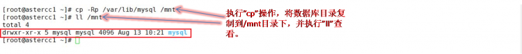 • 将/var/lib/目录下的mysql文件夹复制到/mnt下,如下执行操作: