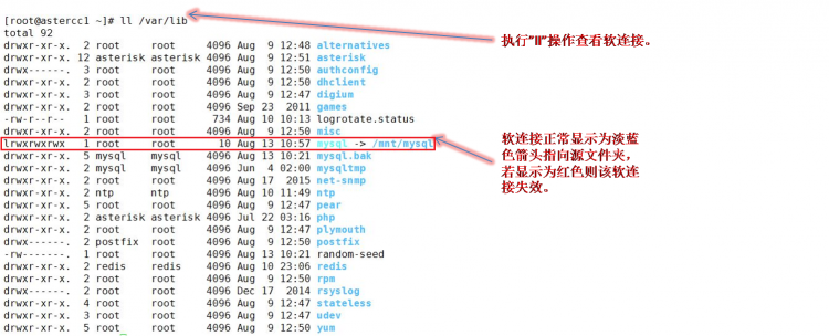 • 复制完成后如下执行命令,将新数据库目录软链接至/var/lib操作如下: