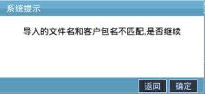 12.创建导入客户资料计划,上传的客户资料文件名称与要导入表名称不相同时,系统会弹出“导入的文件名和客户包名不匹配,是否继续”的提示窗,如下图: