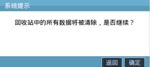 19.清空回收站时,系统会弹出“回收站中的所有数据将被清除,是否继续?”的提示窗,如下图: