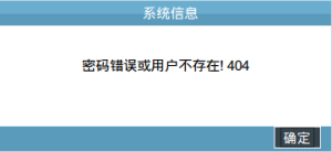 20.在登录系统时,密码错误或者用户名输入错误,系统会弹出“密码错误或用户名不存在”的提示窗,如下图: