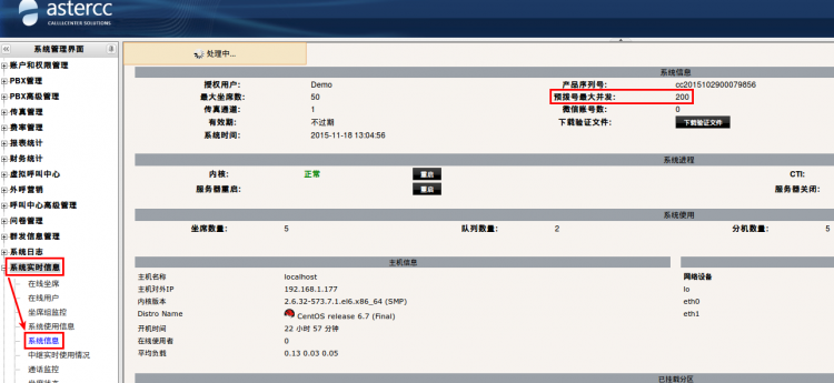 打开左侧管理列表,点击[系统实时信息]→[系统信息] 进入系统信息页面,可以查看整个系统允许预拨号最大并发数,如下图: