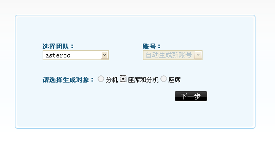 选择团队:指你要把批量添加的这些坐席和分机创建在哪个团队下,当已选择的生成对象为“坐席和分机”时,账号一栏里不能进行选择系统默认为每一个创建的坐席和分机建立一个随机新帐号。