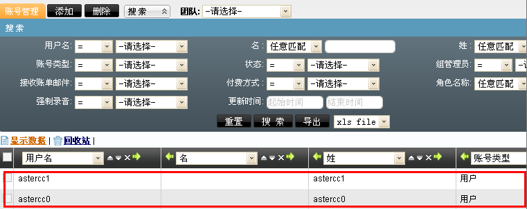 我们依次回到系统管理列表下,账户和权限管理–>账号管理、坐席管理,PBX管理–>设备管理去查看我们批量添加的数据是否创建成功