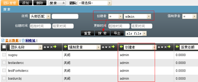 如图,搜索栏里创建者选择admin,点击搜索就会列出所有由admin创建的数据。