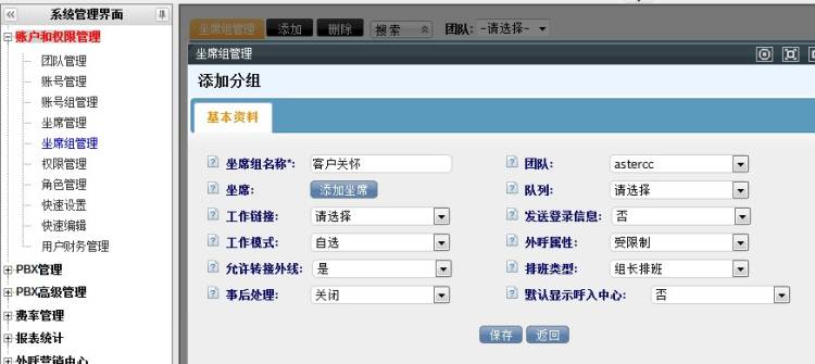 添加坐席组