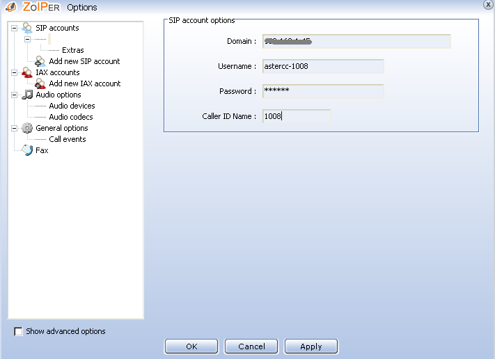 Password:填写分机的密码