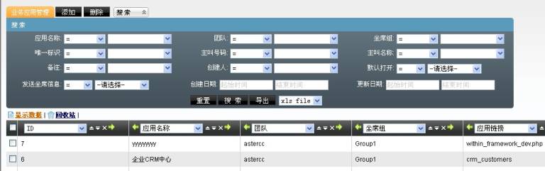 从呼叫中心高级管理模块进入业务应用管理页面