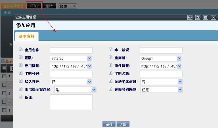 当你已拥有一个crm系统时,希望让它接收astercc电话事件,并且弹屏显示客户资料,需要借助业务应用管理功能。