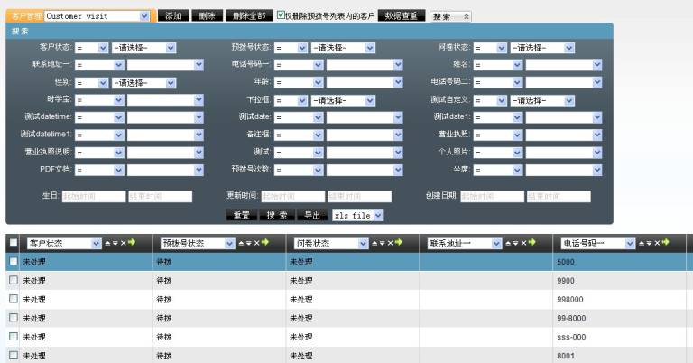 此页面搜索区域内的字段 以及列表 标题头的字段 ,都是根据 该外拨营销任务的后台显示字段设置 而来