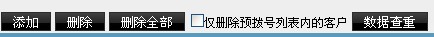 仅删除预拨号列表内的客户,当前页面默认是选中状态。就是 点击 删除 或者 删除全部 按钮的时候,仅仅把该外拨营销任务对应的预拨号列表里的数据删除掉,而不删除客户包内的数据。如果未选中,点击 删除 或者 删除全部 按钮,将会同时删除 客户包和预拨号列表 里的数据
