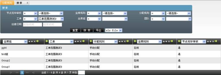 在上一节中,我们新建的工单模板涉及5个节点,4个坐席组。此时在工单管理→分配规则页面可以看到4条参与组数据。