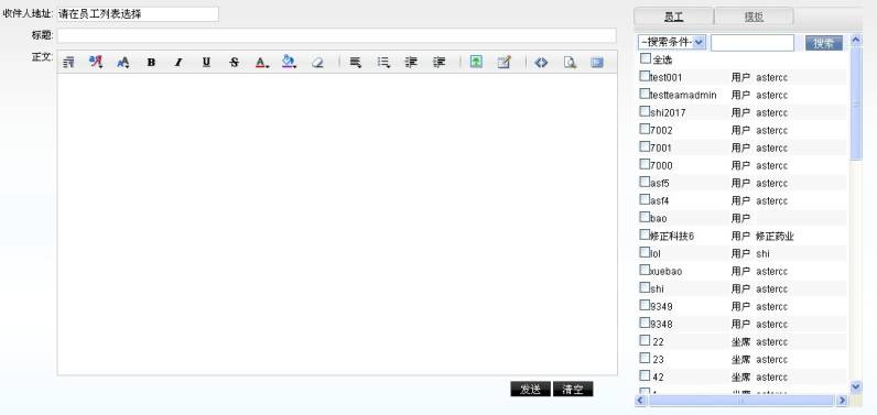 内部消息,类似于公告,但是没有公告那么正式,主要用于员工间在系统内进行文字通信。