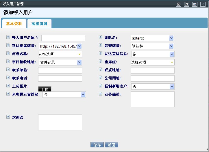 添加呼入用户管理