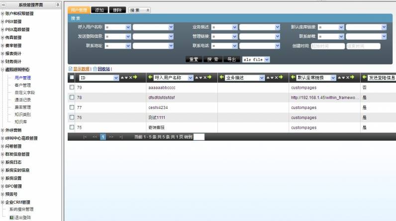 左侧管理列表 虚拟呼叫中心–>用户管理,进入下图所示页面