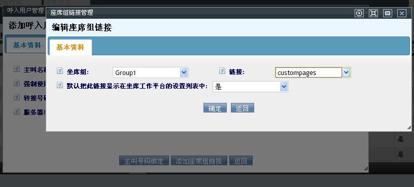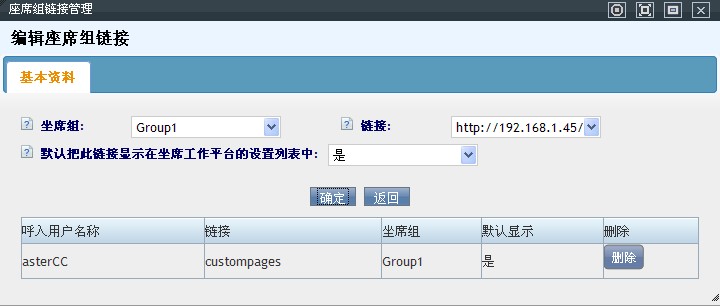 点击【添加坐席组链接】按钮,打开坐席组链接管理页面