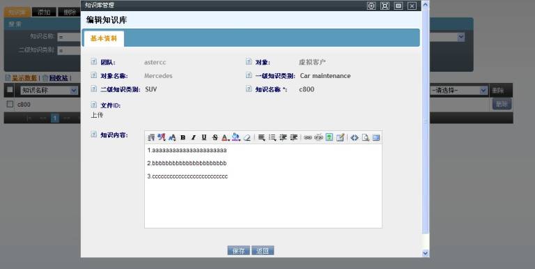点击【保存】,返回到知识库页面,我们可以看到刚刚新增加的信息。