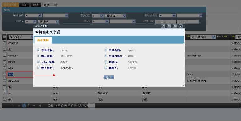 字段多语言: 自定义段显示的多语言,需要根据默认语种配合使用