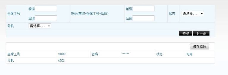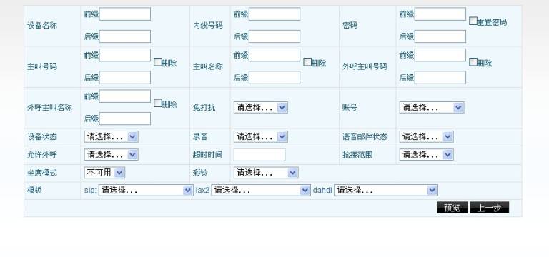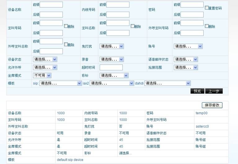 设定完毕后点击预览,系统将以第一个分机为例,列出按照上面的设定保存后,分机的参数变化