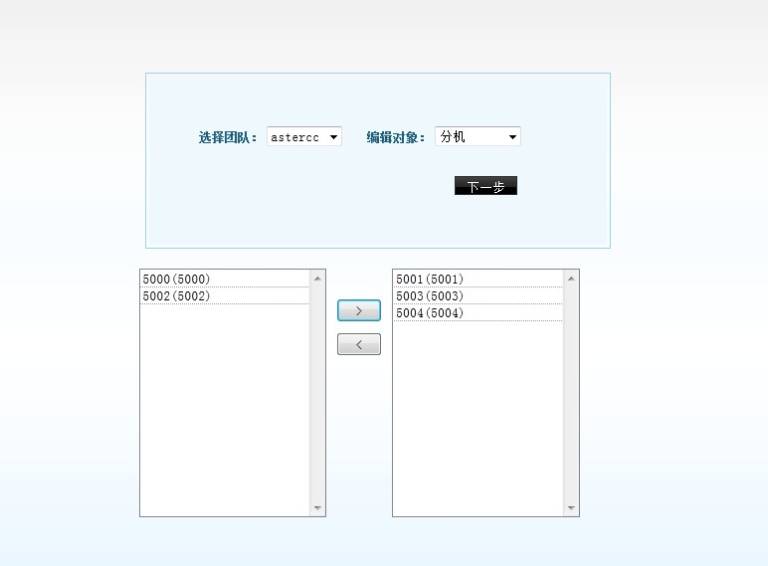 可选择的快速编辑的对象包括:分机,坐席,账号。
