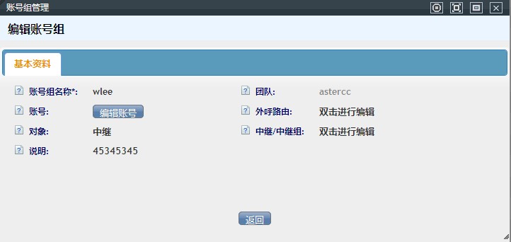 在帐号组页面中,双击一条帐号组信息,即可对其进行编辑修改。