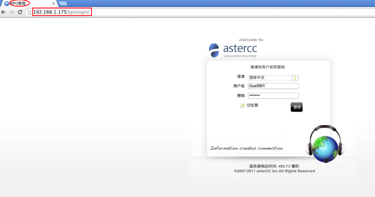 登录BPO账号,需要在特定的页面登录,如:192.168.1.175/bpologin/,如下图: