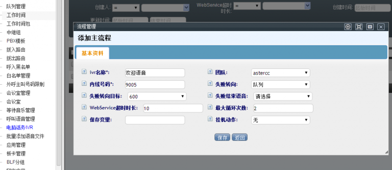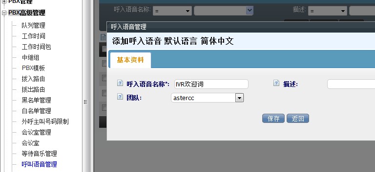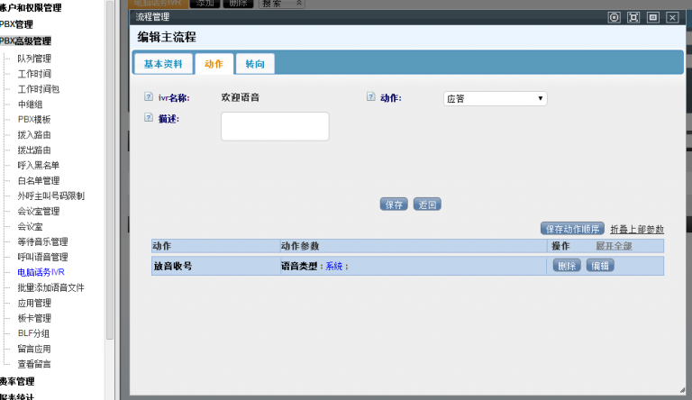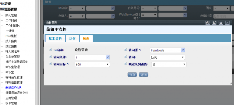 点击左侧菜单,PBX高级管理 → 电脑话务,添加