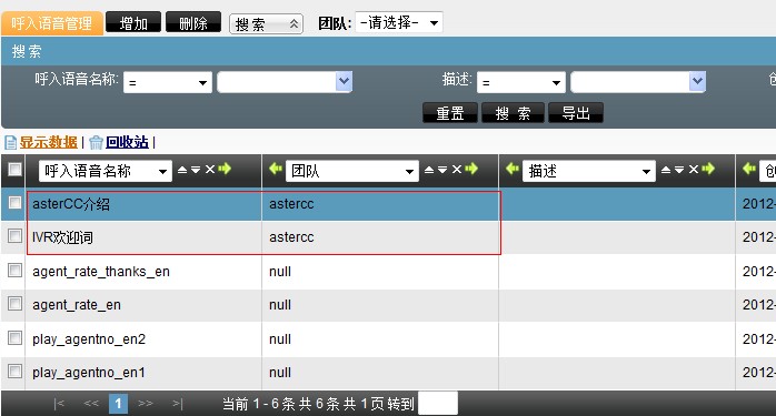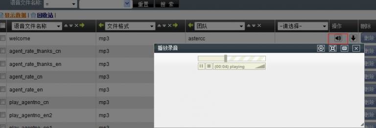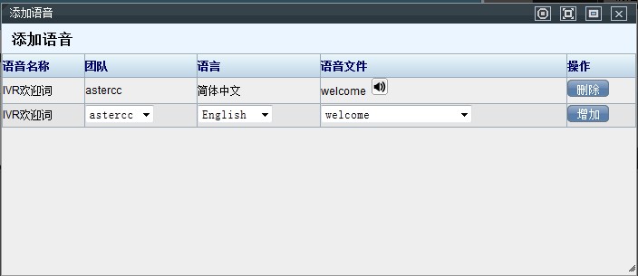 这里我们只设立一个最简单的IVR,即客户进入IVR后首先收听到 “欢迎收听asterCC广播,了解更多asterCC产品信息,请按1,人工服务请按0”,如果客户通过电话键盘按1,则转到一条新的语音,如果客户按0,则转为人工服务。