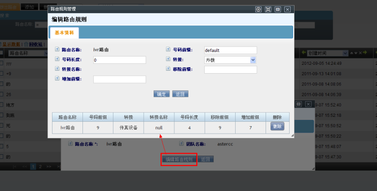 数据填写完毕后,点击【保存】按钮进行数据保存。在拨出路由页面可以看到新增加的数据。