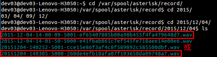 文件名称:要保存的留言录音文件的名称,只能用英文和数字,为避免留言文件名称重复造成录音文件被覆盖,建议设置为:[year]-[mon]-[day]-[hour]-[min]-[sec]-[callerid]-[sessionid] 或者 [year][mon][day]-[hour][min][sec]-[callerid]-[sessionid],表示生成的留言文件名格式为:年-月-日-时-分-秒-主叫号码-会话唯一标识.wav 或者 年月日-时分秒-主叫号码-会话唯一标识.wav,请务必注意参数的大小写,生成文件名如下图: