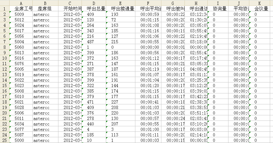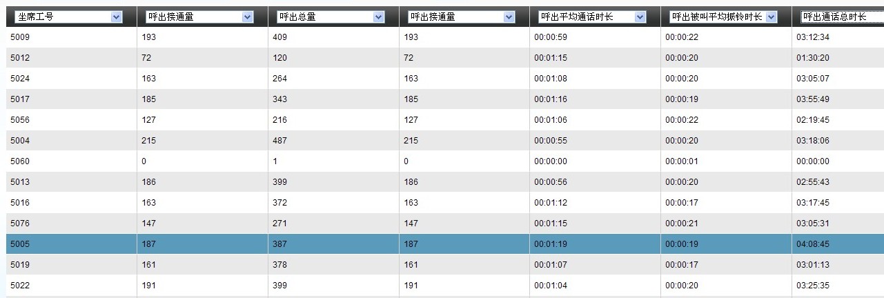 坐席的表现报表:
