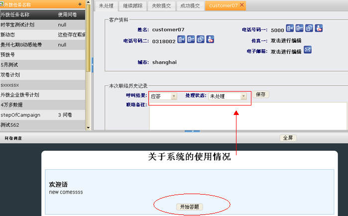 开始答题对客户进行问卷调查