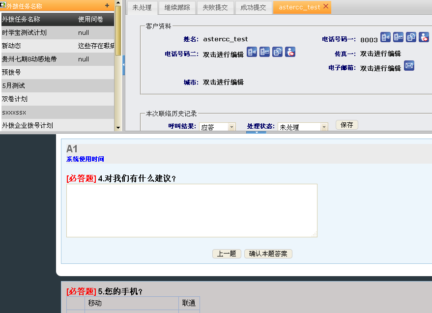 我们不仅可以实现呼入时的问卷弹屏,还可以通过外拨计划进行问卷调查
