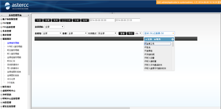 • 允许客户设定报表中的导出字段和字段显示顺序(导出时使用当前显示的字段和顺序,用户可以根据需求自由调整,对于系统报表,允许客户选择要导出的字段)