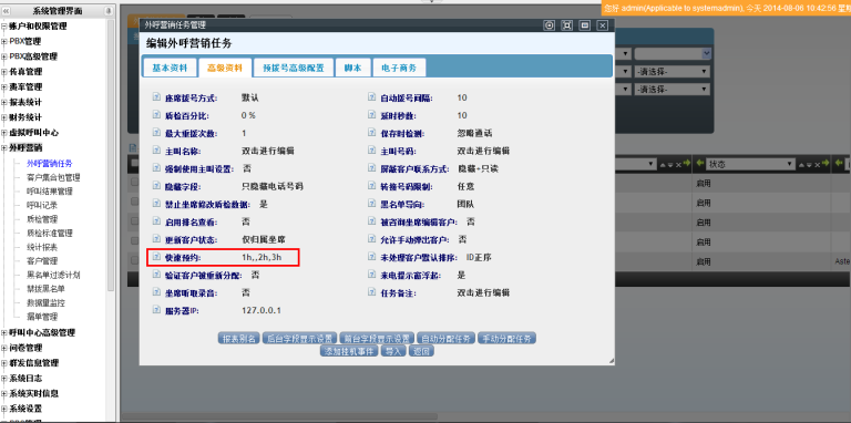 • 预拨号默认使用坐席100%为拨号策略