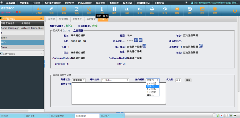 • 外呼营销中设置快速预约时,允许使用空来表示无预约