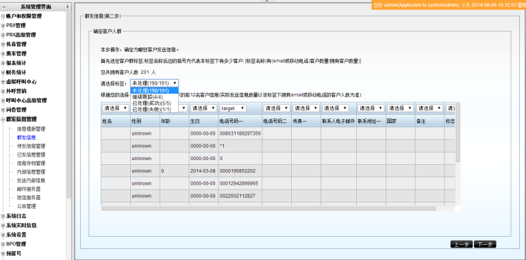 • 群发信息时允许通过标签从主表中选择发送对象