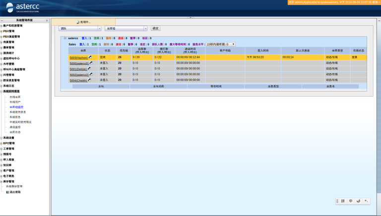 • 坐席组监控页面可以显示全部坐席(包括未登录坐席)