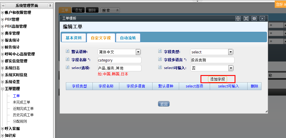 呼叫中心中工单的使用